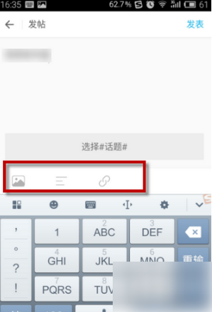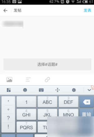 3、点击后就可以发帖啦,跳出的页面就是发帖页面了,你还可以选择话题;