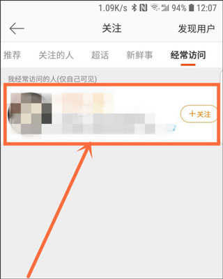 2、进入关注页面之后,选择经常访问,就能查看到经常访问的用户了;