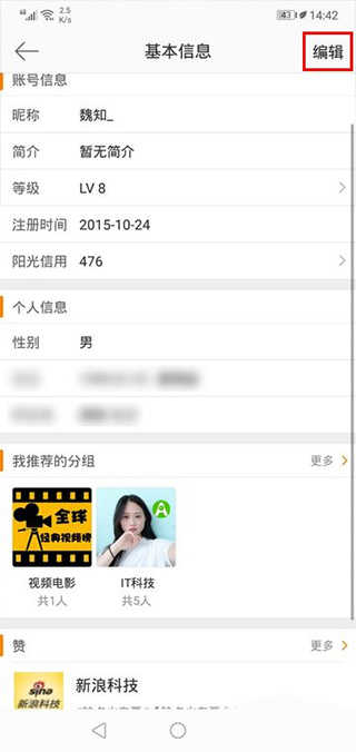 5、等到打开基本信息的页面之后,点击右上角的“编辑”。