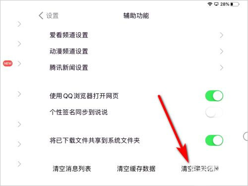 3、在辅助功能的最下方有三个选项,选择最右侧的清空聊天记录。