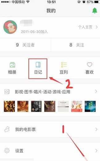 然后首先进入“我的”这一项。之后可以看到“日记”。