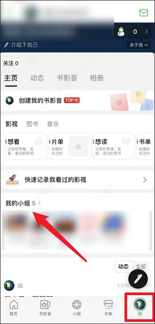 1、登录手机豆瓣,进入“我”,点击“我的小组”。