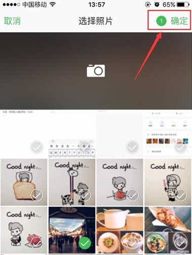 5、可以选择手机相册中的多张图片一起插入,也可以只插入单张;当然,也可以直接拍照。选择好要插入的图片后,点击“确定”按钮。