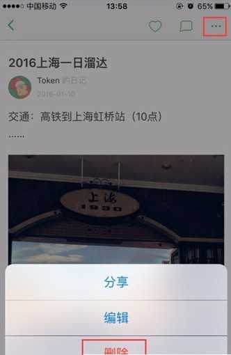 如果要修改,点击右上角的“…”按钮,在展开项中可以选择“编辑”按钮,对日记进行重新编辑。