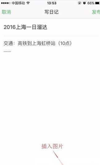 写完内容后,最后点击“发布按钮”发布日记。