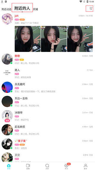 -附近的人/动态:浏览附近动态,发现身边有趣的人。