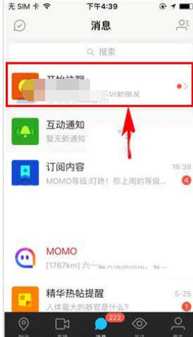 1、打开momo陌陌软件,首先点击首页下栏中的【消息】,