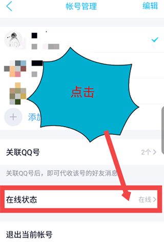 4、在打开的账号管理界面,能看到在线状态设置,点击打开。