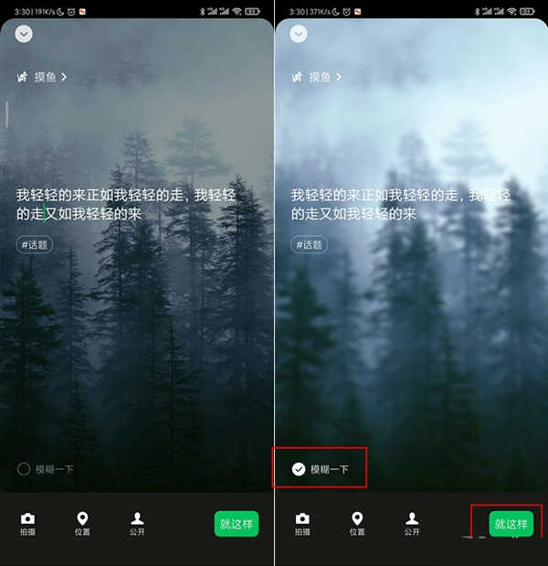 4、选择好图片或者视频背景后,可以选择是否模糊处理,然后输入文字信息,点击右下角的“就这样”即可。