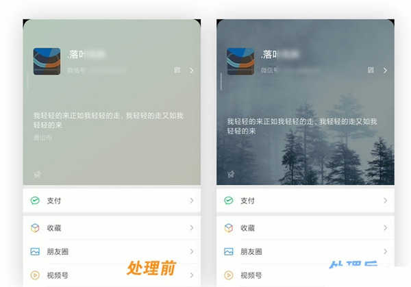 接下来点击红框里的“拍摄”,实拍或选择一张现有的图片。这里微信提供了一个“模糊化”按钮,可以根据需要决定是否对图片施以模糊。等一切准备停当,点击“就这样”,状态背景图就设好了。
