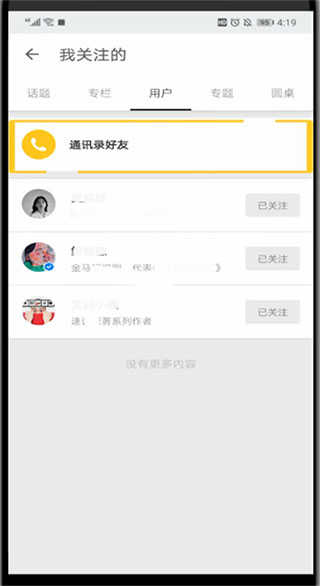 6、点击用户,点击通讯录好友即可查找通讯录好友