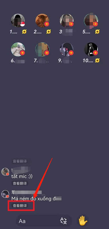 2、在聊天室页面中,文字下方会有一个查看翻译选项,点击即可翻译。