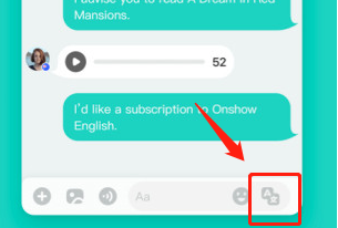 4、在聊天页面,如果想直接发送外文可以点击输入框旁边的转换按钮。