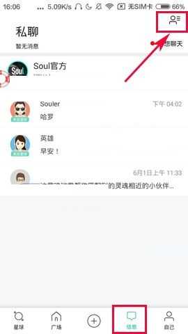 1)打开软件,点击【消息】页面右上角的【人像】图案,接着点击【我关注的】;(如下图)