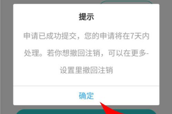 在“用户注销”界面中输入注册该账号的手机号码以及收到的验证码,点击下方的“提交”按钮,系统就会提醒,点击确定。