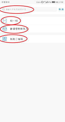 3、这里有着四种不同的方式添加好友,分别是扫一扫、输入手机号用户名搜索、邀请联系人以及我的二维码。