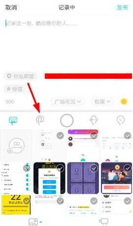 2、通过底端列表里的“@”按钮,我们就可以通过@匿名小助手的方式,让瞬间动态以匿名的方式发布。