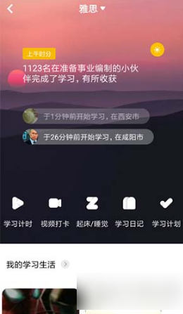 2.然后从页面下方的菜单列表里找到“学习计时”功能,用户就可以制定相应的学习计划。
