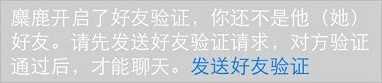 好友将你删除或加入黑名单后,你给他发消息时,出现以下提示: