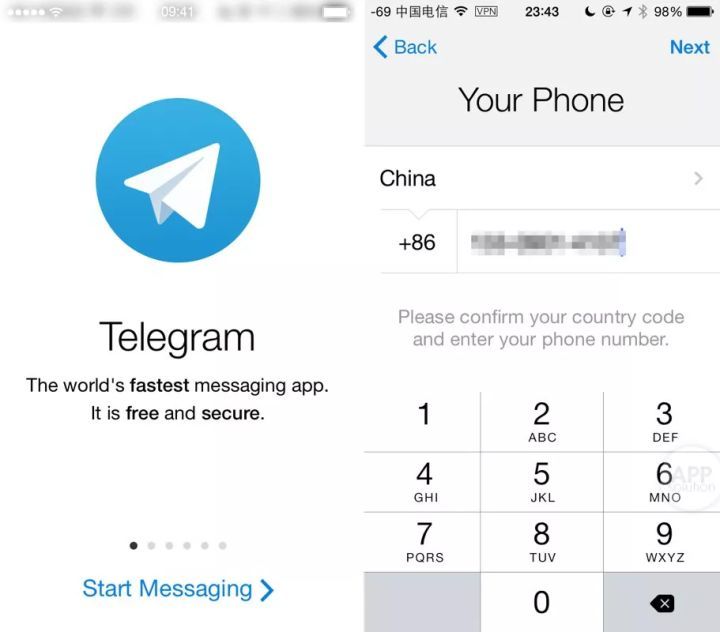 3、可以使用国内的+86电话号码注册Telegram账号,通过国内+86电话号码注册的Telegram账号无法私聊,也无法开启加密对话功能,因此,一般推荐大家使用国外号码注册,而不使用国内号码。如果你没有国外号码的话,可以通过Google Voice来注册Telegram账号。