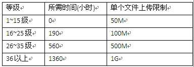 彩虹等级与小组人数、聊天记录保存时间对应表
