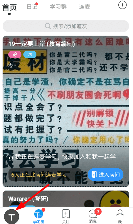 1、若是想要更换“Timing”里的学习目标,大家就得先点击首页左下角的“T”按钮,进入到学习目标的页面继续下一步设置。
