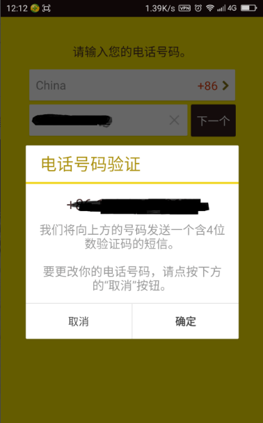 1.打开软件会看见这个界面,输入你的手机号码,点击下一个