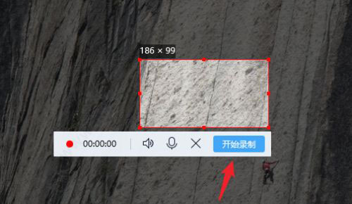 3、打开屏幕录制后,使用鼠标框选出需要录屏的区域,点击开始录制的选项