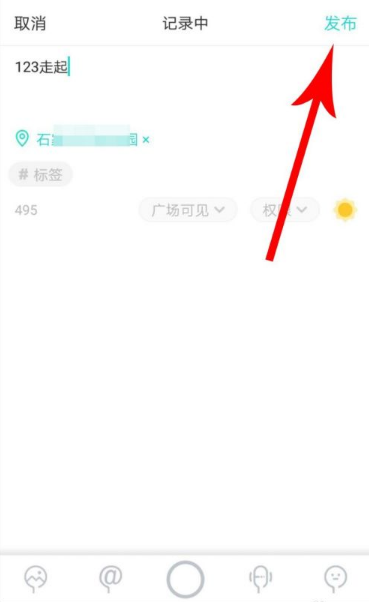 文字编辑完毕,地点也选择完毕后,点击右上角的“发布”,将此篇瞬间发布出去