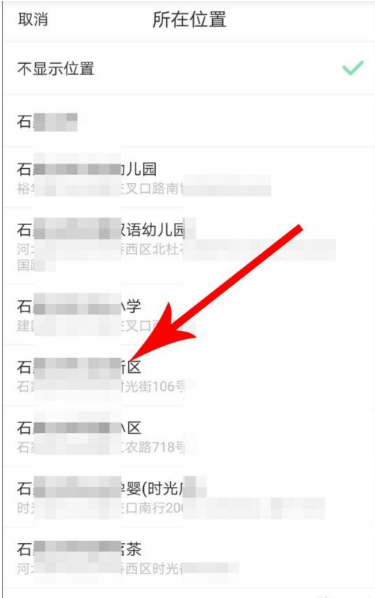 打开位置选择界面后,soul会自动定位您所在的位置,从位置列表中选择一个详细的地址并点击