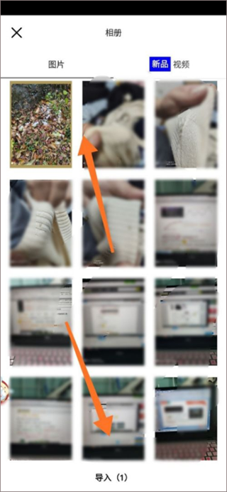 2、来到相册页面,我们根据实际需要选择合适的照片,再点击导入;