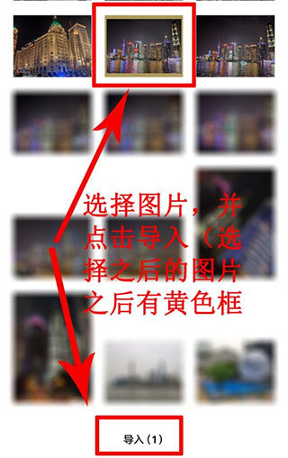 2、选择图片,点击“导入”(选择图片之后会出现黄色框);