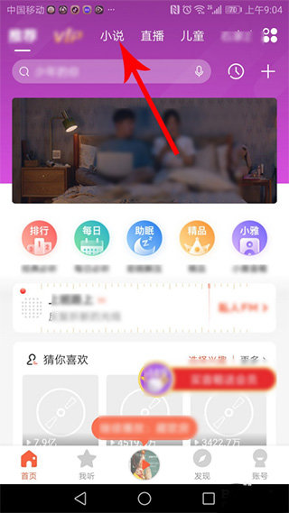 1、点击界面顶部的小说