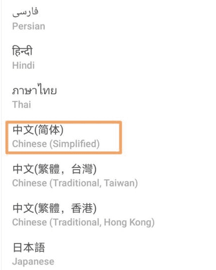 拉到最底部,选择中文(简体)